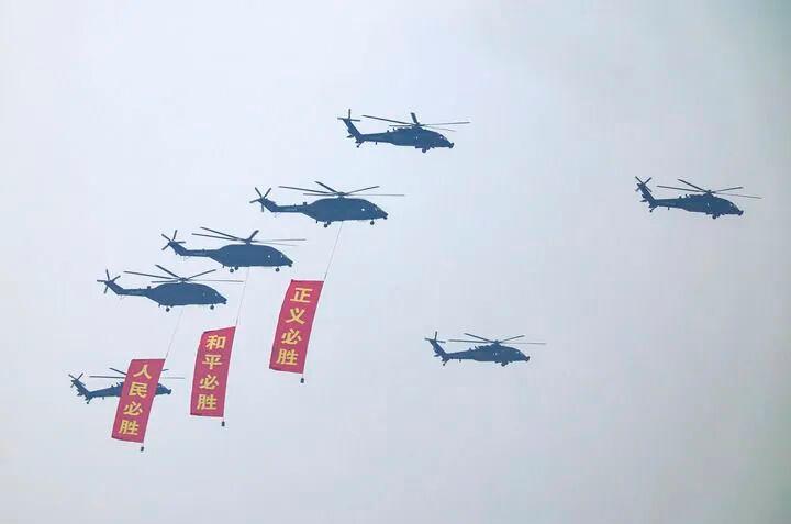 80响礼炮震彻云霄、8万羽和平鸽振翅飞翔,“正义必胜!和平必胜!人民必胜!”的昂扬之声久久回荡。