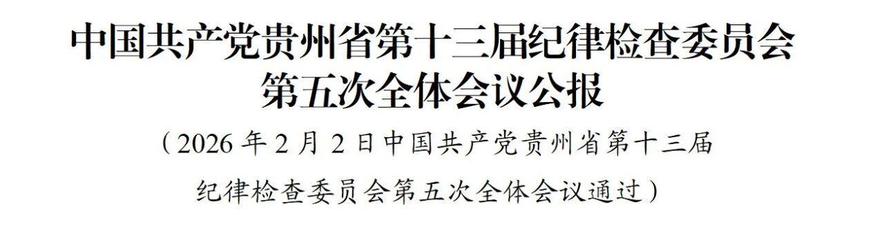 中国共产党贵州省第十三届纪律检查委员会第五次全体会议,于2026年2月1日至2日在贵阳举行。出席这次全会的有省纪委委员33人,列席133人。